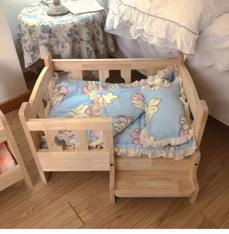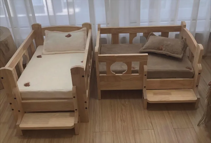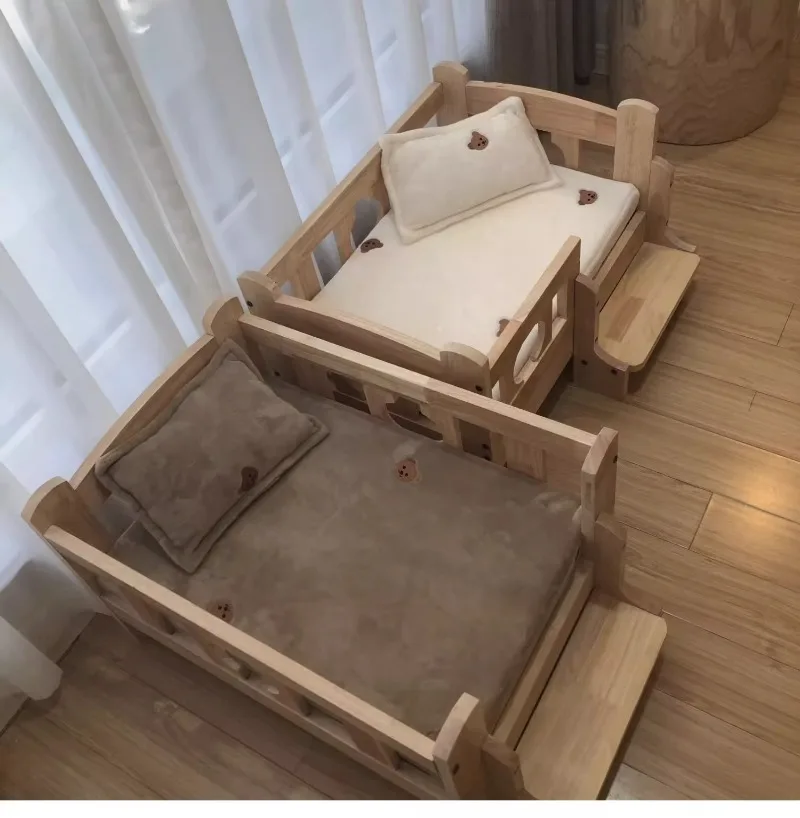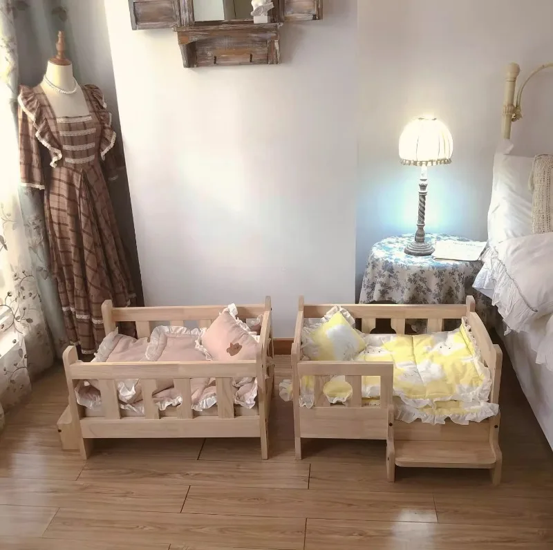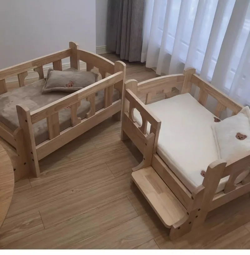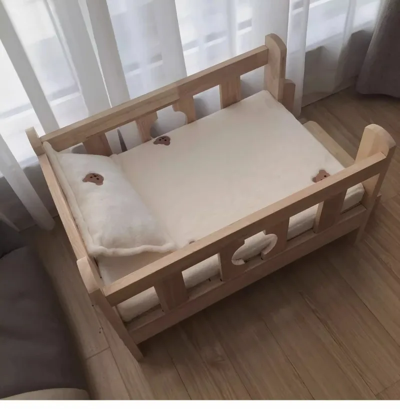 Solid Wood Pet Bed Wooden Dog Bed Frame Kennel Furniture Pet Products Bed Stand Elevated Fence Rounded Corners for Cats Dogs - A / 68 48 43cm