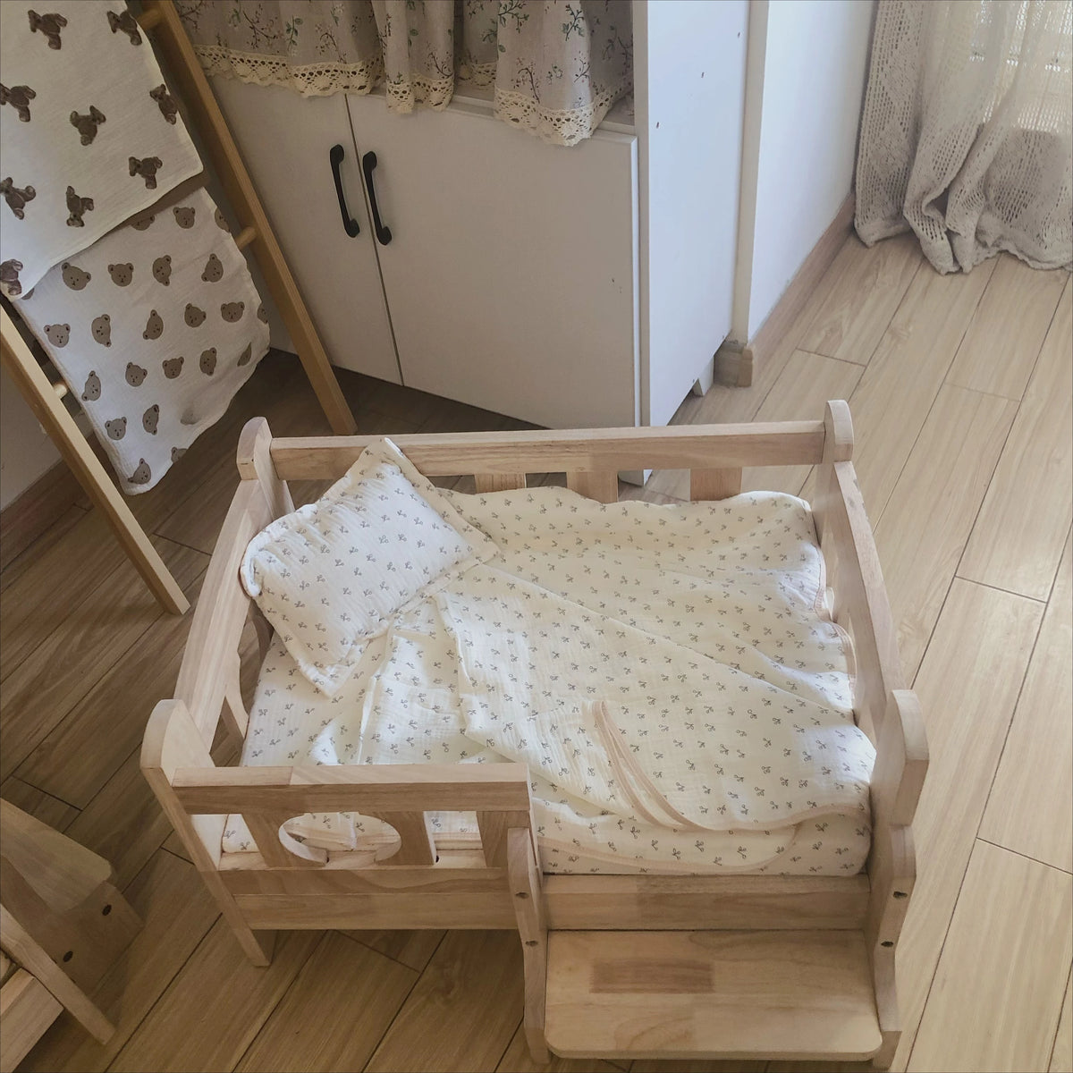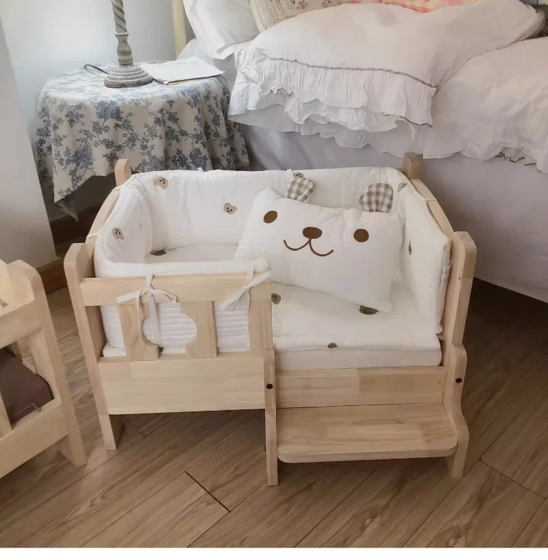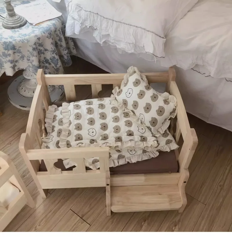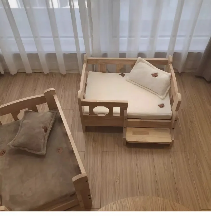 Solid Wood Pet Bed Wooden Dog Bed Frame Kennel Furniture Pet Products Bed Stand Elevated Fence Rounded Corners for Cats Dogs - A / 68 48 43cm