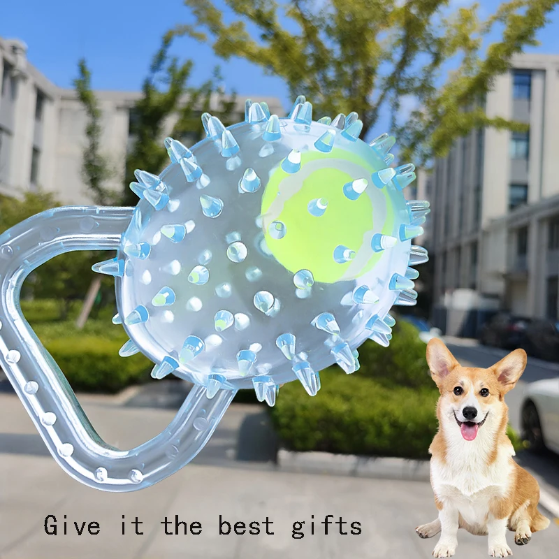 Pet dog toy with Football and Soft Thorn, made of soft rubber, suitable for large, medium and small dogs. - green 1 / S
